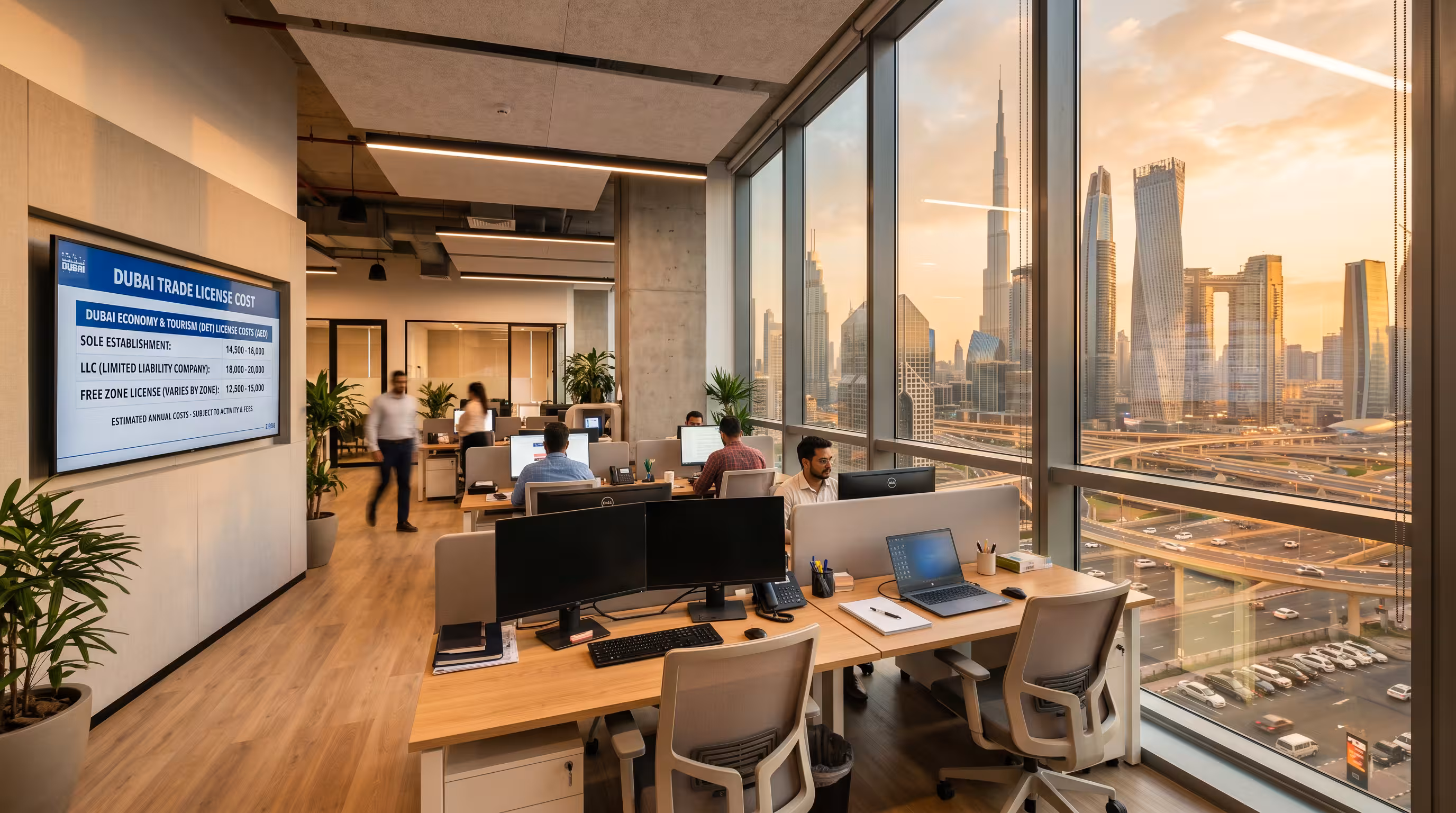 - Professional license: AED 7,000 to AED 15,000